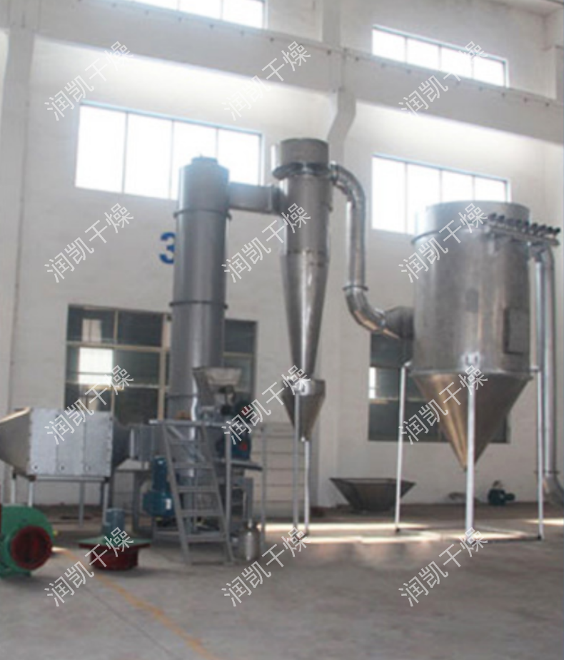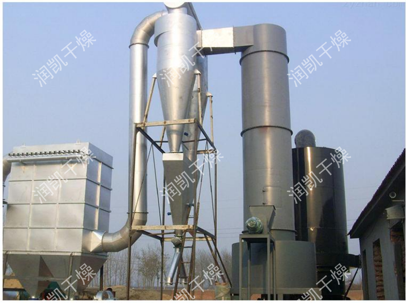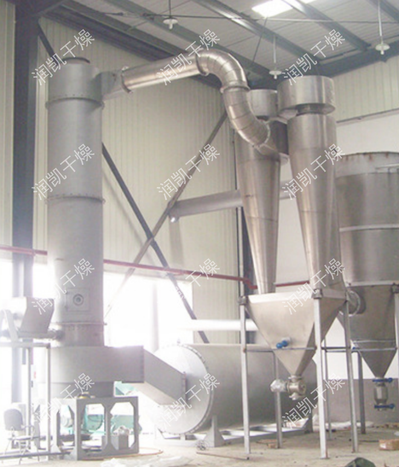 干燥氣體進(jìn)入干燥機(jī)底部,產(chǎn)生強(qiáng)烈的旋轉(zhuǎn)氣流,對(duì)器壁上物料產(chǎn)生強(qiáng)烈的沖刷帶出作用,消除粘壁現(xiàn)象。 在干燥機(jī)低部高溫區(qū),熱敏性物料不與熱表面直接接觸,并裝有特殊裝置,解決了熱敏性物料的焦化變色問(wèn)題。
