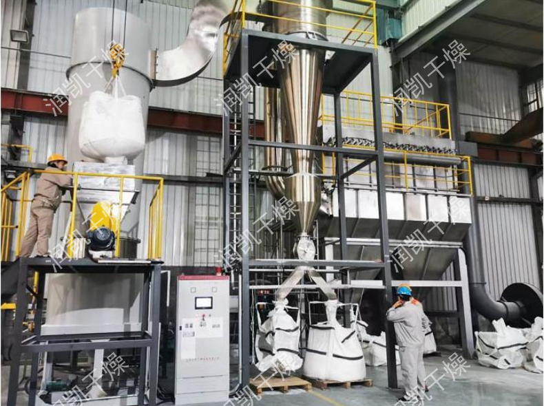 由于干燥室內(nèi)氣速高,物料停留時(shí)間短,達(dá)到高效、快速、小設(shè)備、大產(chǎn)量。 干燥室上部加裝陶析環(huán)及旋流片可以控制出口物料的粒度及溫度,以達(dá)到不同物料的終水份粒度的要求。